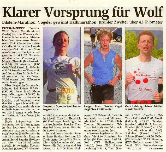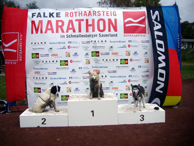 _____________________________________________________________________ Bernd, Kerkis und Sarja holen den Titel bei den BAYERISCHEN SCHLITTENHUNDEMEISTERSCHAFTEN OFF SNOW über 6 km Crosslauf in 21:10 min. Herzlichen Glückwunsch zu dieser meisterlichen Leistung! _____________________________________________________________________ 30.11.2008 Schlammschlacht beim Olne-Spa-Olne (BE) über 65 km, nix für Asphaltläufer! _____________________________________________________________________ 22.11.2008 Der Genussmarathon in der Fränkischen Schweiz - schöner geht's wirklich nicht! Erwins Lauf- (Bild-) Bericht... Dieters Lauf- (Bild-) Bericht... _____________________________________________________________________ 08.11.2008 Der Amberger Ultralauf über 63 km liegt hinter uns - weiter geht's! Einen besonderen Glückwunsch an Senia , die mit 10 Jahren ihren ersten Halbmarathon gelaufen ist ! _____________________________________________________________________