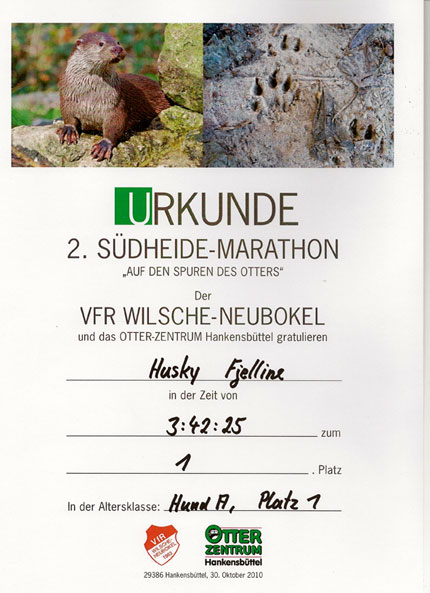 _____________________________________________________________________ 30.10.2010 Alle Hunde sind beim 2. SÜDHEIDE-MARATHON gut in das Ziel gekommen! ____________________________________________________________________ 09.10.2010 Wir gratulieren Fjell zu ihrem ersten Marathon! ____________________________________________________________________